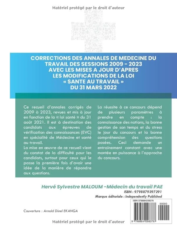 Ce recueil dannales corrigees de 2009 a 2023, entierement revues et actualisees selon la loi sante de mars 2022, est un outil incontournable pour les candidats aux Epreuves de Verification des Connaissances (EVC) en Medecine et Sante au Travail.